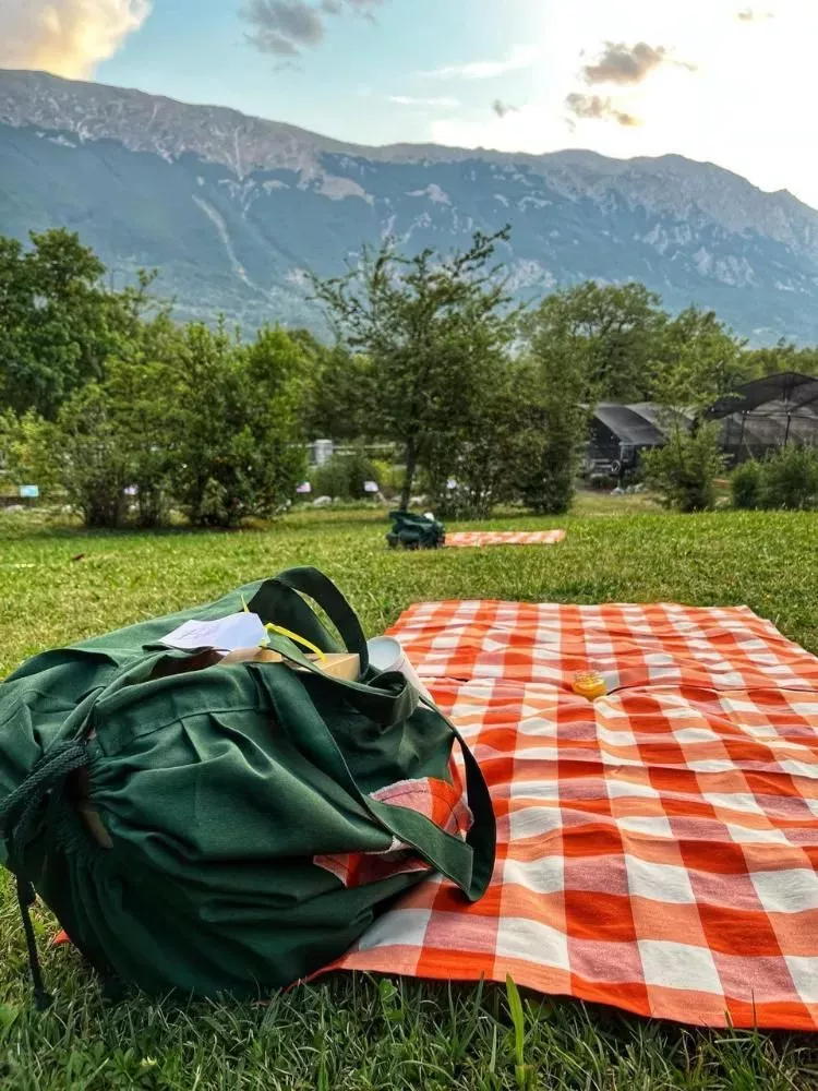 - Picnic di prodotti locali tipici (antipasto, panino, tris di formaggi, dolce, vino e acqua); per menù senza glutine o vegetariano avvisare preventivamente.